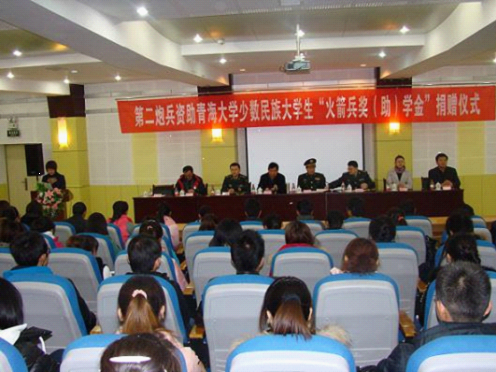 12月28日,第二炮兵资助棋牌游戏平台 少数民族大学生“火箭兵奖(助)学金”颁发仪式在棋牌游戏平台举行。第二炮兵96351部队副政治委员朱忠良少将、第二炮兵政治部办公室群工处处长郑仪德上校、96351部队政治部秘群处干事肖洪林少校、副校长李福安和100名贫困学生参加了仪式。会议由学生工作处处长刘永青主持。棋牌游戏平台赵丽娇等80名学生受到每人3000元的奖励。