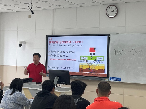 202463日下午,在智慧大厦E607开展探地雷达原理及应用主题报告。钱教授详细介绍了探地雷达的基本原理,并将近几年在冻土、沙漠及城市环境中所开展的工作和案例融入报告,使师生深刻领略到探地雷达高精度的地下成像能力以及其广泛的应用领域;最后,钱荣毅教授耐心解答了部分生在高密度电法、雷达数据处理和解释方面遇到的实际问题。