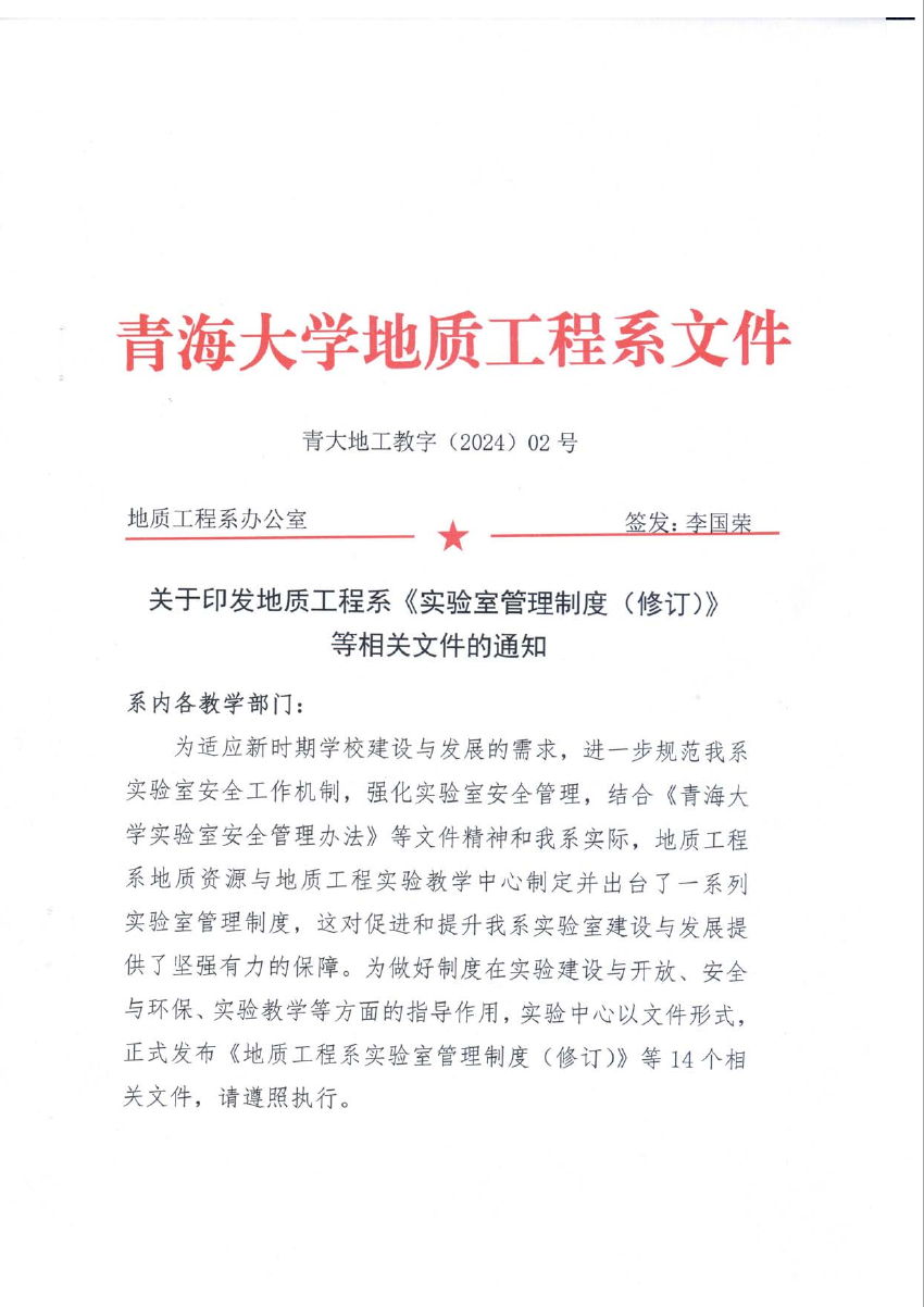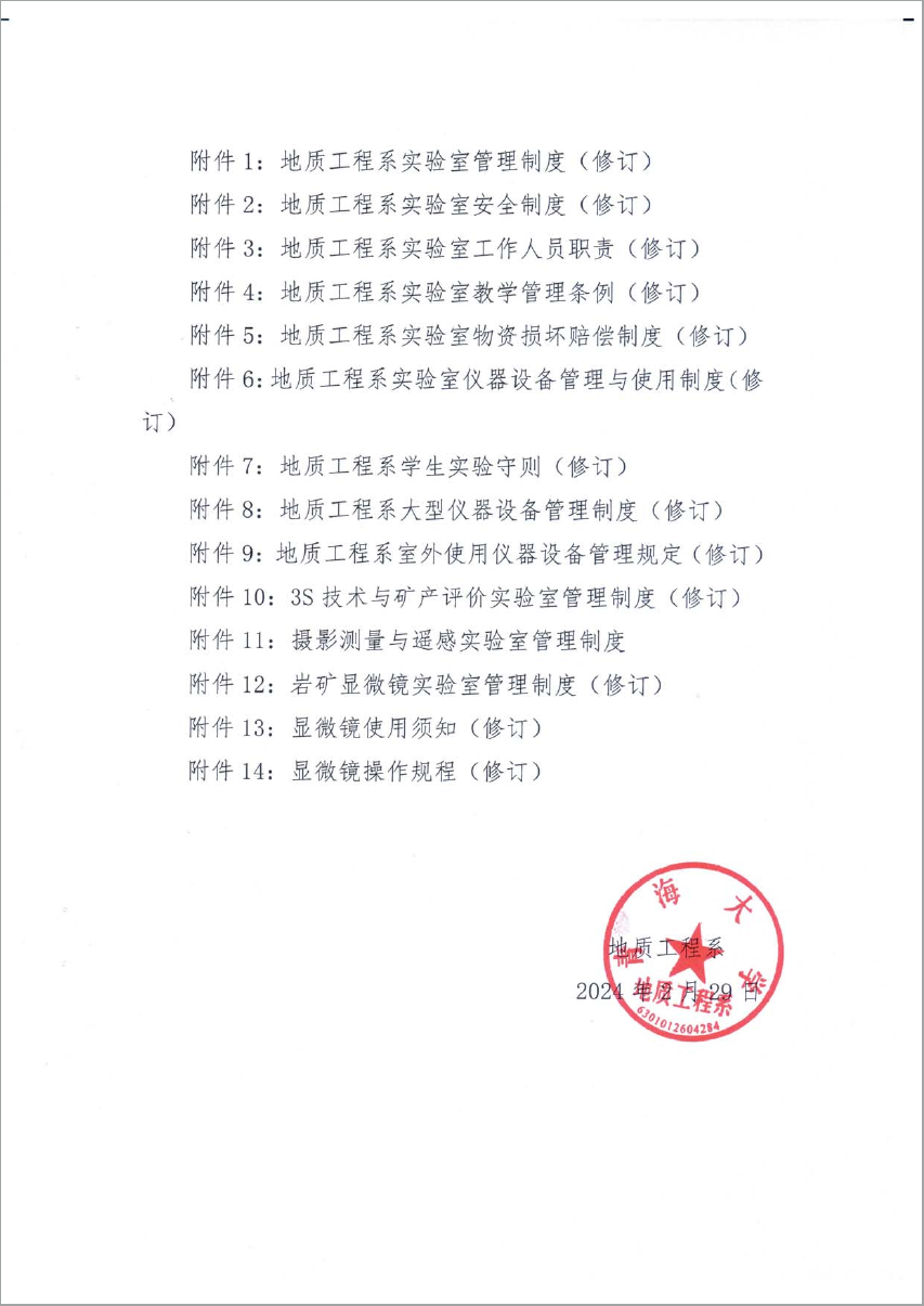 关于印发地质工程系《实验室管理制度(修订)》等相关文件的通知